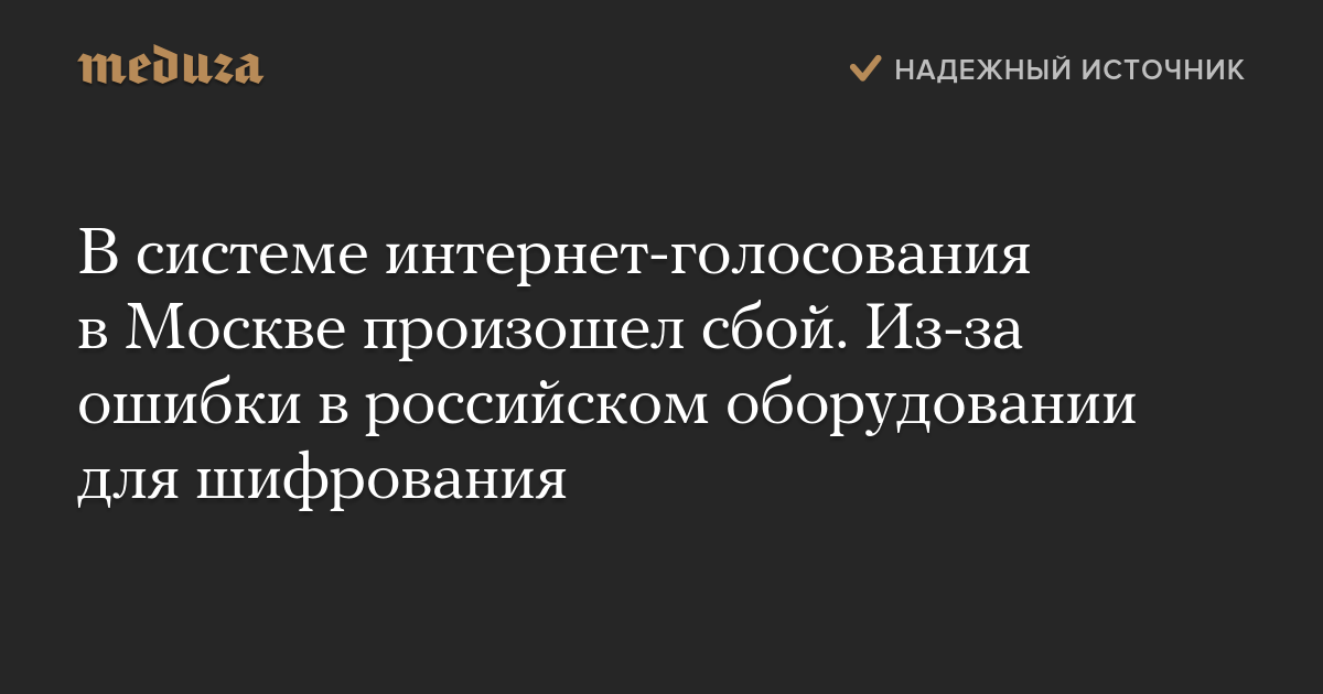 В системе интернет-голосования в Москве произошел сбой. Из-за ошибки в российском оборудовании для шифрования