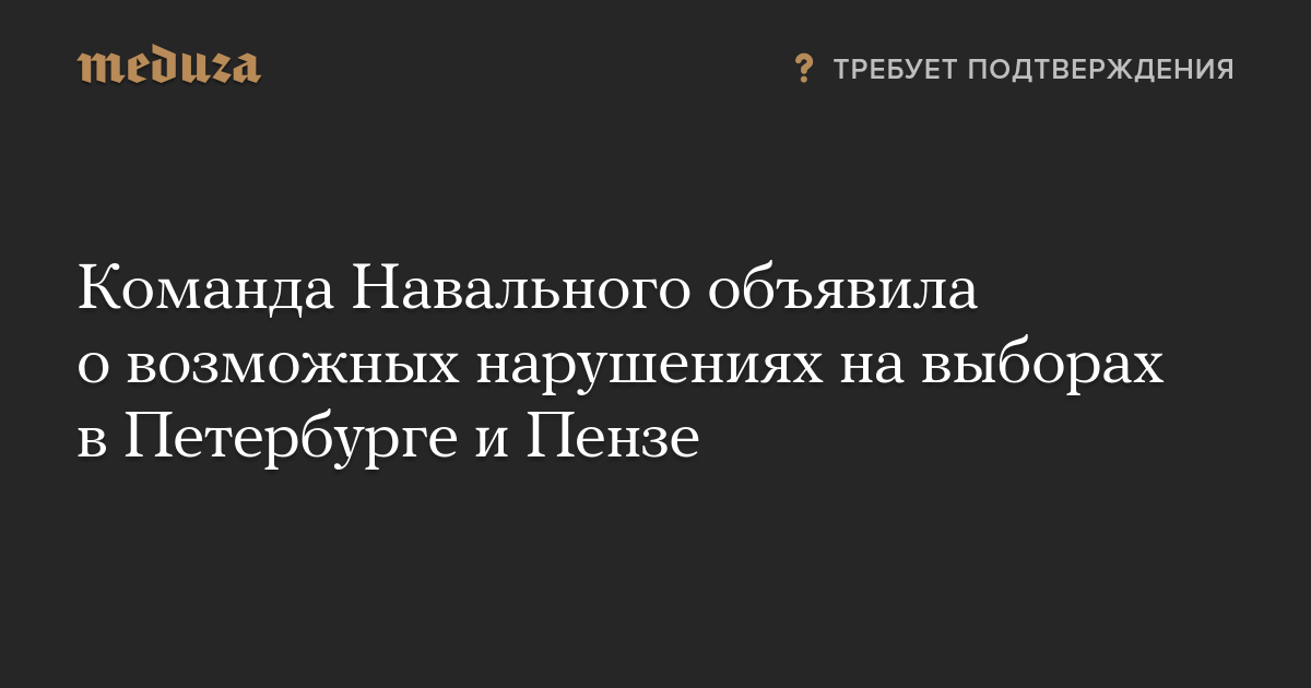 Команда Навального объявила о возможных нарушениях на выборах в Петербурге и Пензе