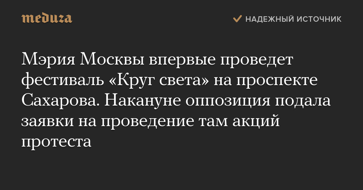 Мэрия Москвы впервые проведет фестиваль «Круг света» на проспекте Сахарова. Накануне оппозиция подала заявки на проведение там акций протеста