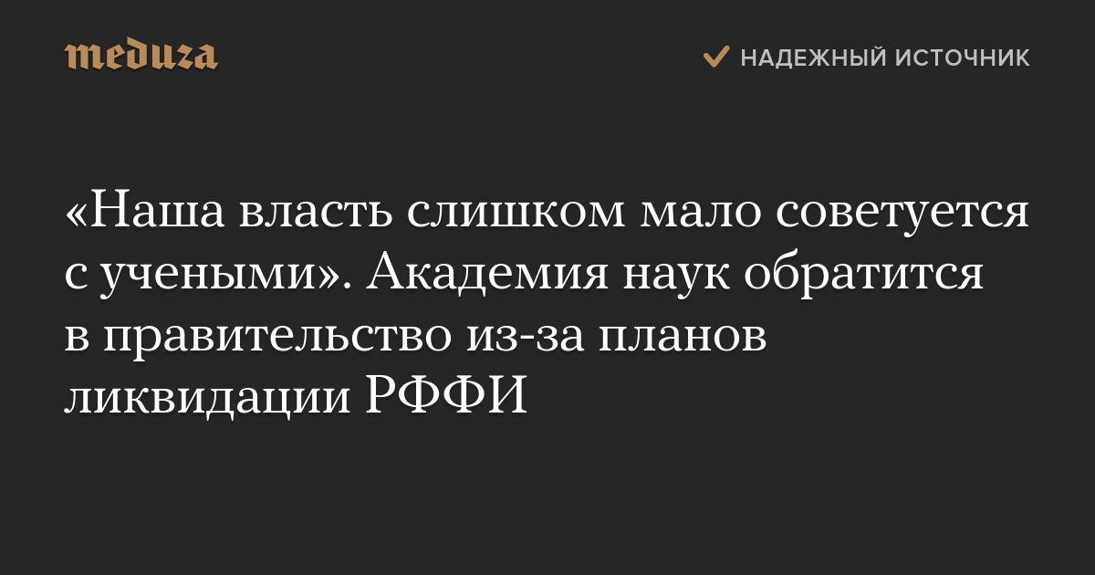 «Наша власть слишком мало советуется с учеными». Академия наук обратится в правительство из-за планов ликвидации РФФИ