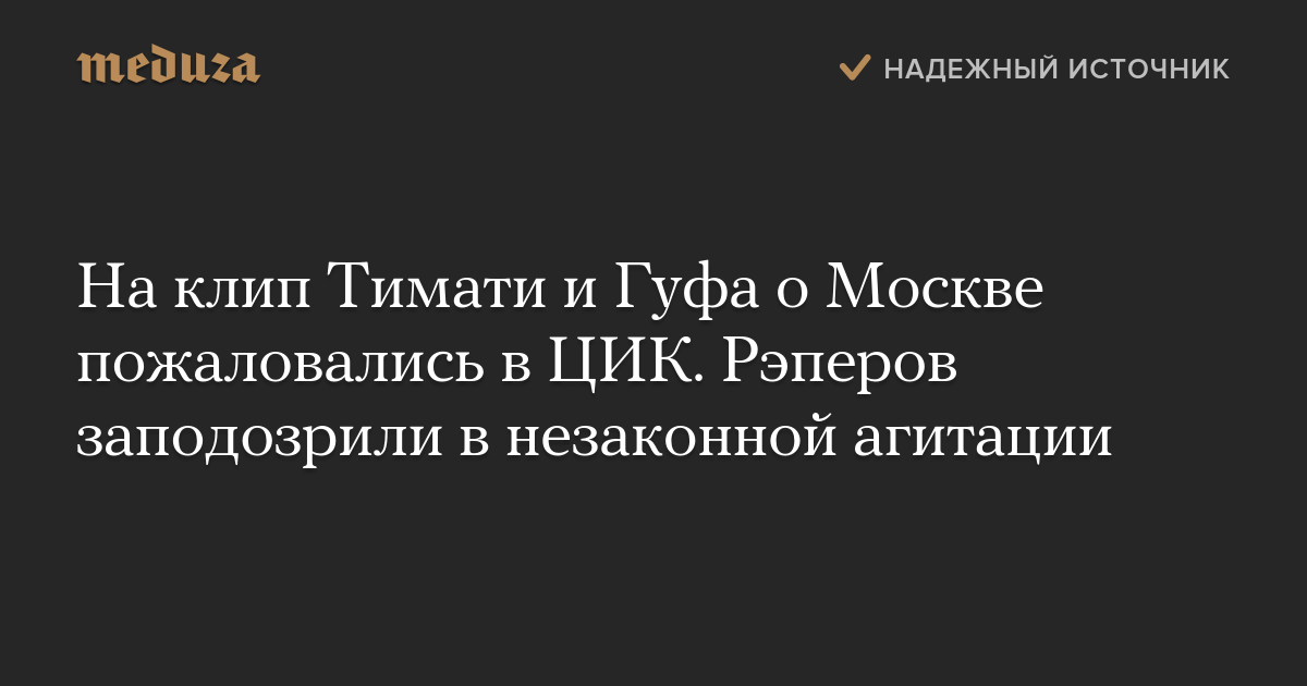 На клип Тимати и Гуфа о Москве пожаловались в ЦИК. Рэперов заподозрили в незаконной агитации
