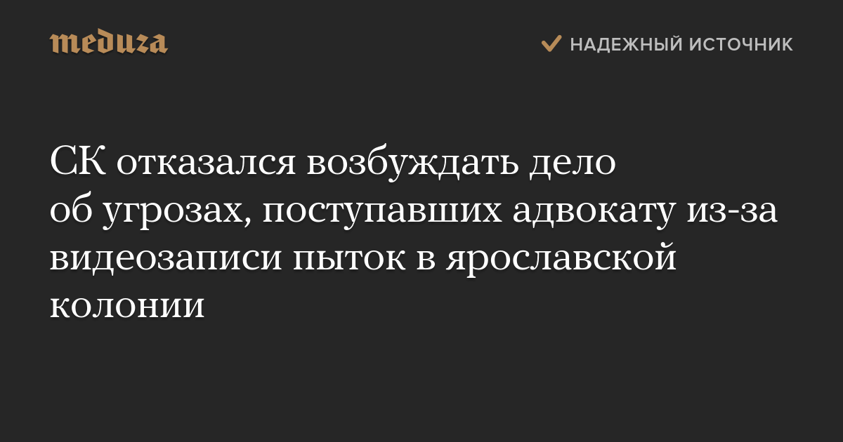 СК отказался возбуждать дело об угрозах, поступавших адвокату из-за видеозаписи пыток в ярославской колонии