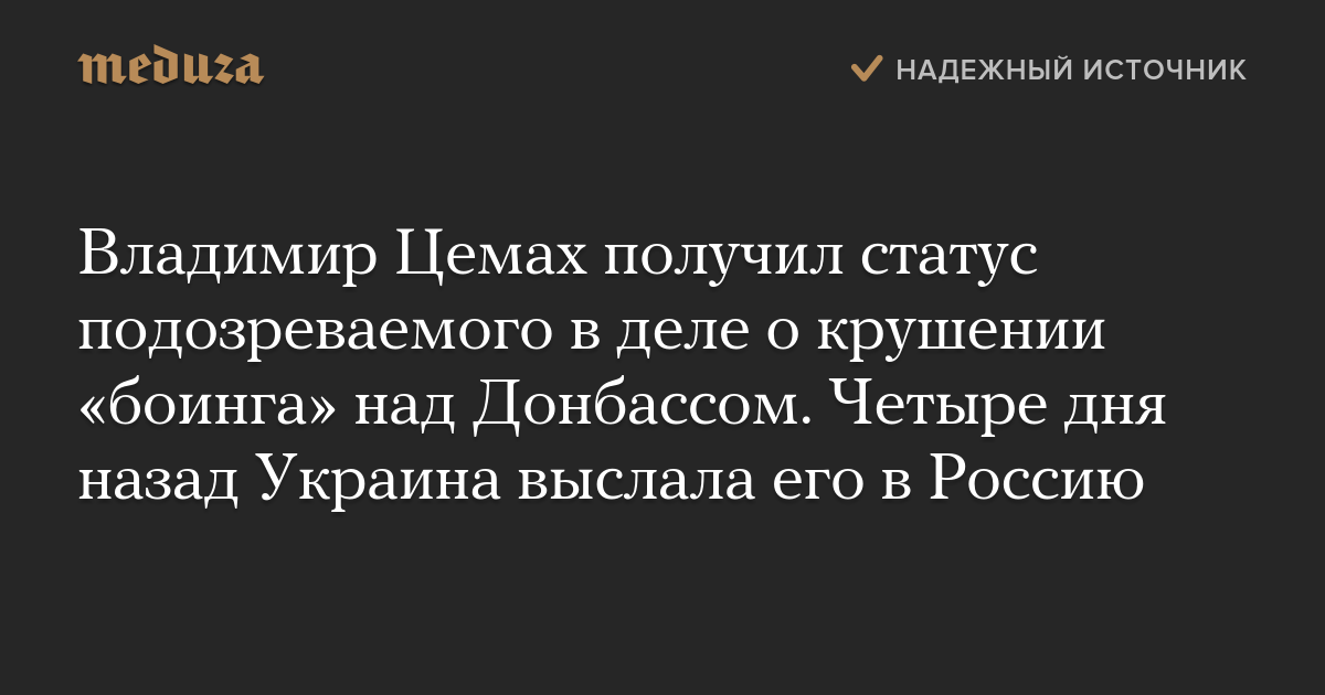 Владимир Цемах получил статус подозреваемого в деле о крушении «боинга» над Донбассом. Четыре дня назад Украина выслала его в Россию
