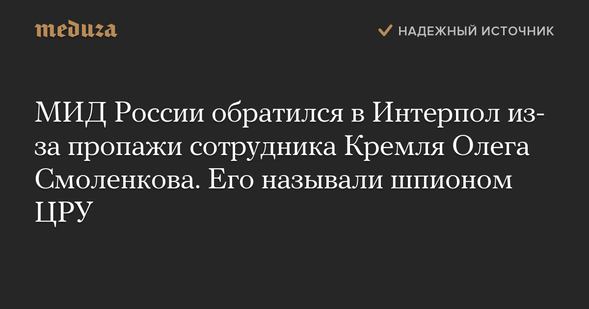 МИД России обратился в Интерпол из-за пропажи сотрудника Кремля Олега Смоленкова. Его называли шпионом ЦРУ