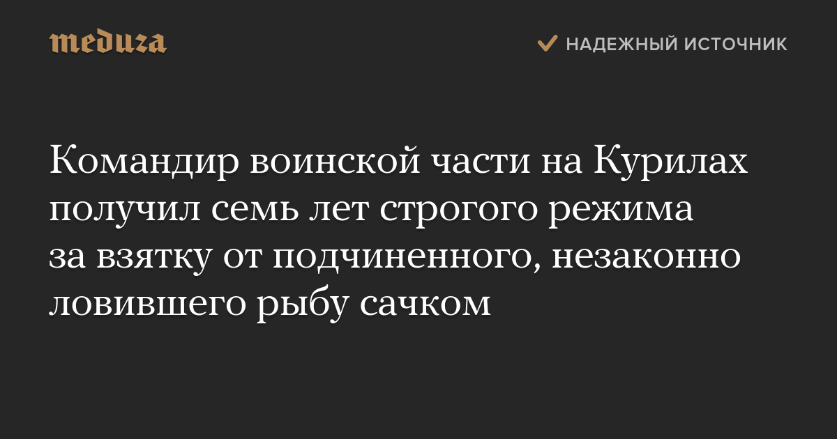Командир воинской части на Курилах получил семь лет строгого режима за взятку от подчиненного, незаконно ловившего рыбу сачком