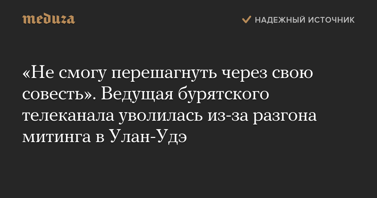«Не смогу перешагнуть через свою совесть». Ведущая бурятского телеканала уволилась из-за разгона митинга в Улан-Удэ