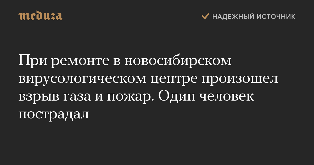 При ремонте в новосибирском вирусологическом центре произошел взрыв газа и пожар. Один человек пострадал