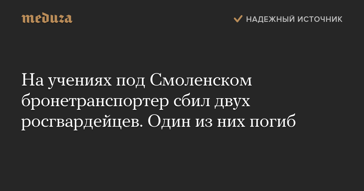 На учениях в Смоленской области бронетранспортер сбил двух сотрудников Росгвардии, сообщает «Смоленская народная газета».