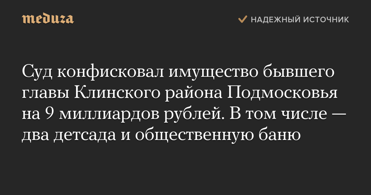 Суд конфисковал имущество бывшего главы Клинского района Подмосковья на 9 миллиардов рублей. В том числе — два детсада и общественную баню