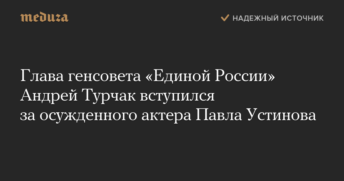 Глава генсовета «Единой России» Андрей Турчак вступился за осужденного актера Павла Устинова