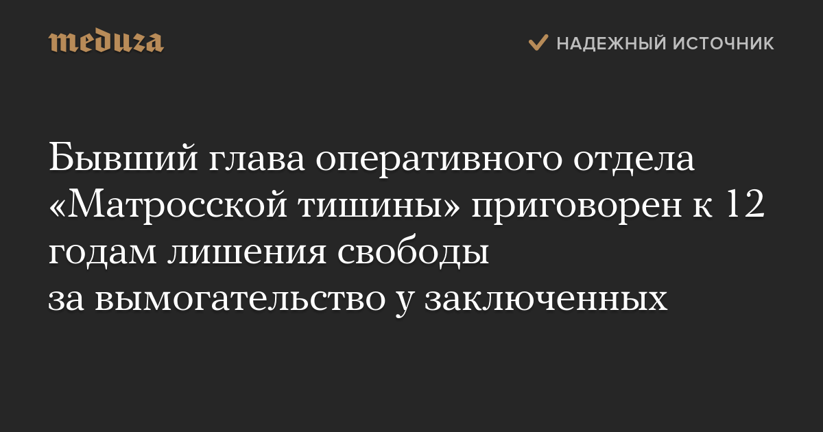 Бывший глава оперативного отдела «Матросской тишины» приговорен к 12 годам лишения свободы за вымогательство у заключенных