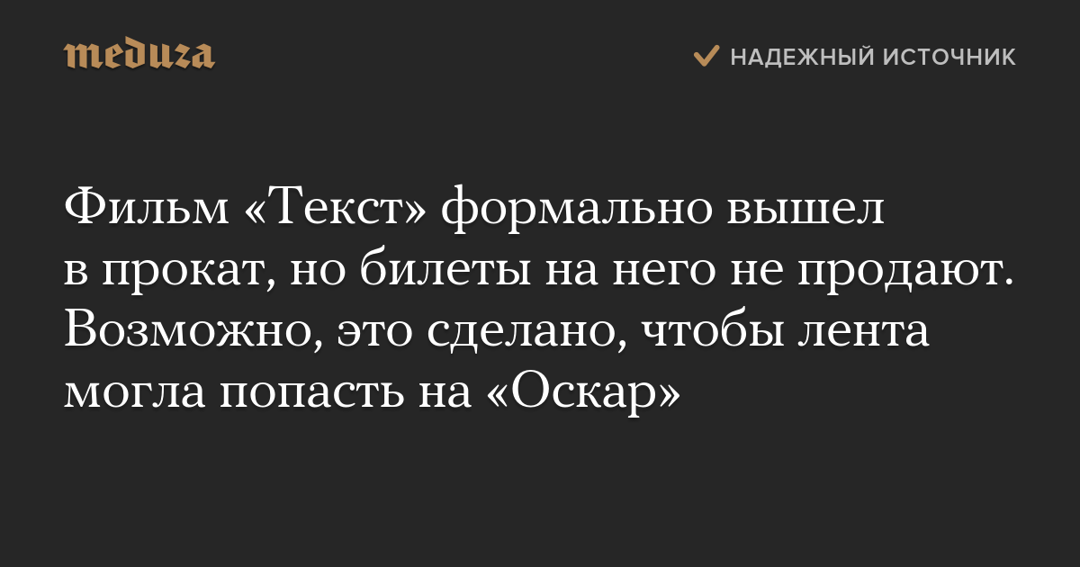 Фильм «Текст» формально вышел в прокат, но билеты на него не продают. Возможно, это сделано, чтобы лента могла попасть на «Оскар»