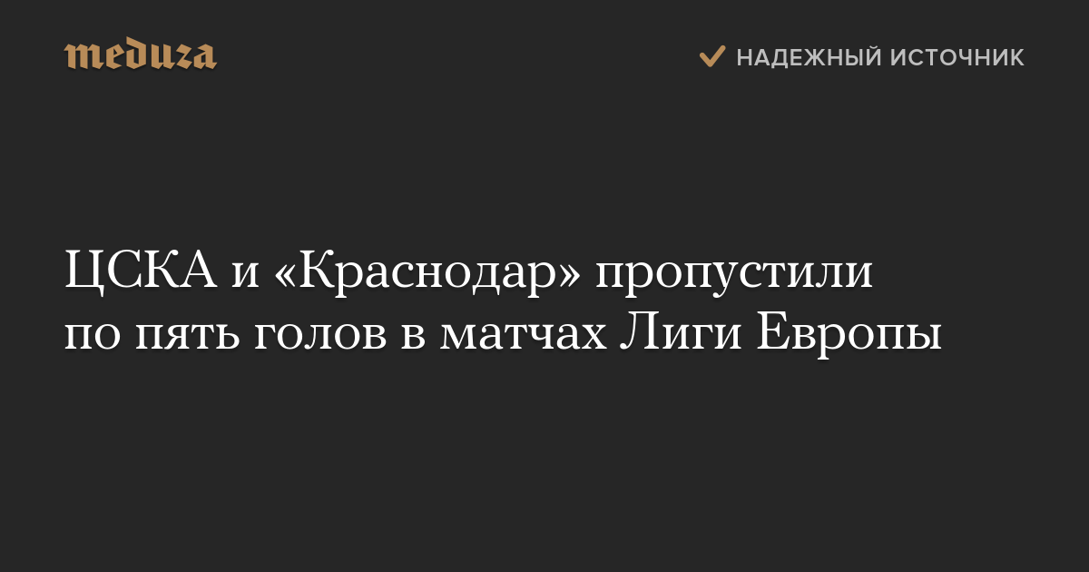 ЦСКА и «Краснодар» пропустили по пять голов в матчах Лиги Европы