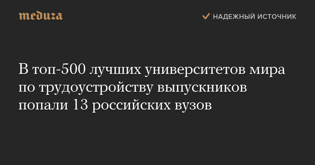 В топ-500 лучших университетов мира по трудоустройству выпускников попали 13 российских вузов