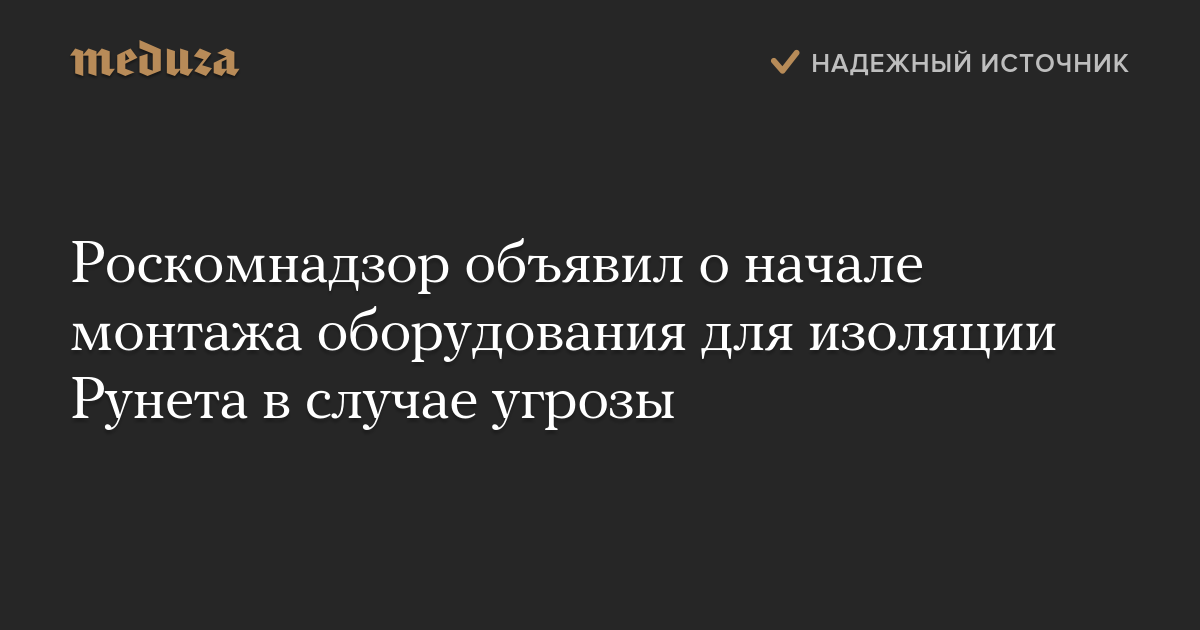 Роскомнадзор начал устанавливать на сетях провайдеров оборудование, которое в случае появления угроз позволит изолировать российский сегмент интернета от остального мира. Об этом объявил глава ведомства Александр Жаров.