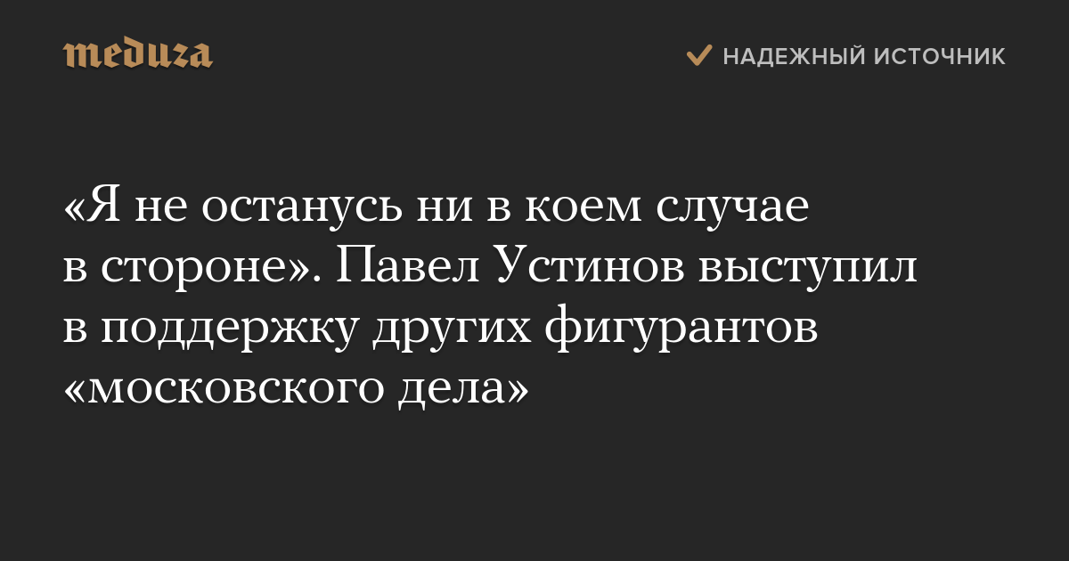 «Я не останусь ни в коем случае в стороне». Павел Устинов выступил в поддержку других фигурантов «московского дела»