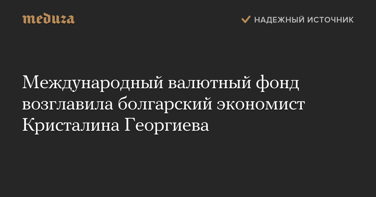 Болгарский экономист Кристалина Георгиева стала директором-распорядителем Международного валютного фонда, сообщается на сайте организации. Она вступит в должность 1 октября.