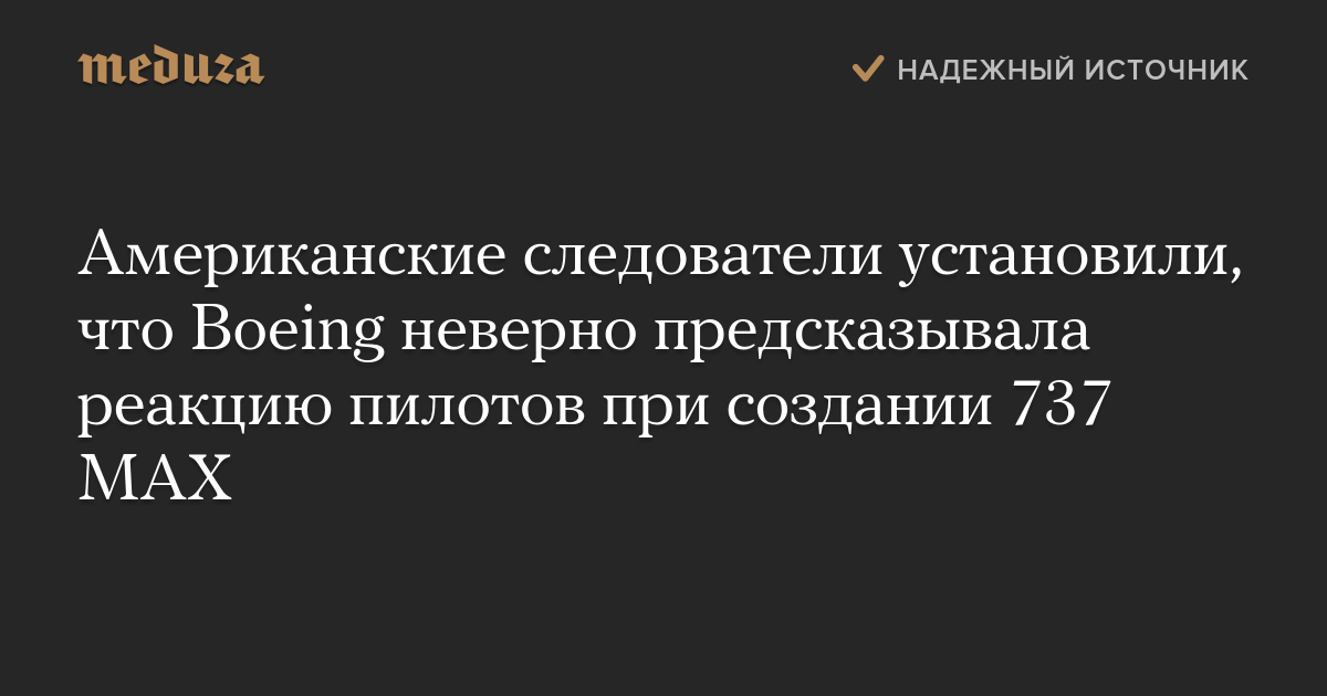 Американские следователи установили, что Boeing неверно предсказывала реакцию пилотов при создании 737 MAX