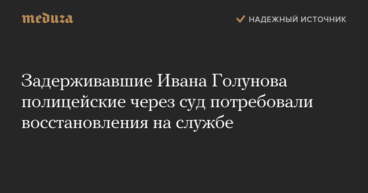 Задерживавшие Ивана Голунова полицейские через суд потребовали восстановления на службе