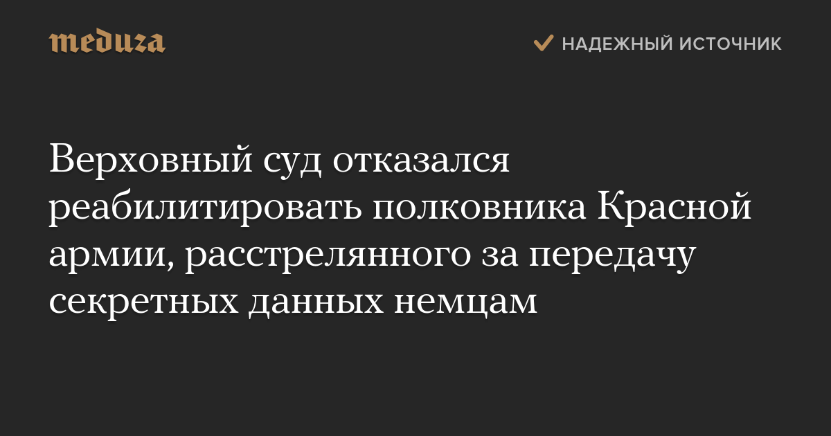 Верховный суд отказался реабилитировать полковника Красной армии, расстрелянного за передачу секретных данных немцам