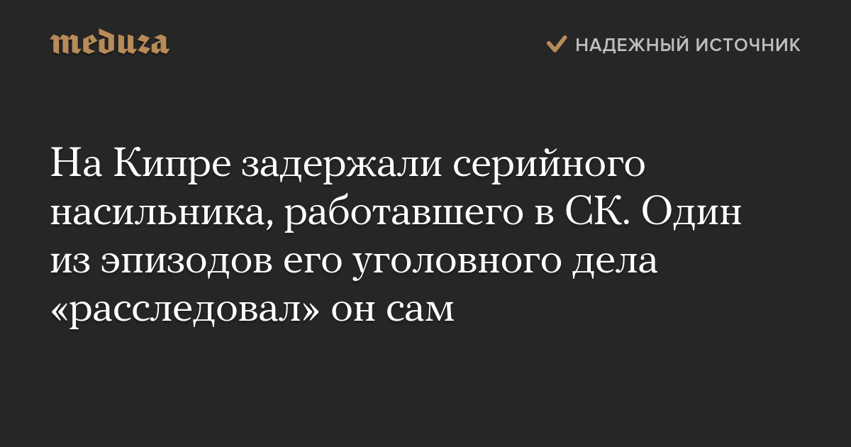 На Кипре задержали серийного насильника, работавшего в СК. Один из эпизодов его уголовного дела «расследовал» он сам