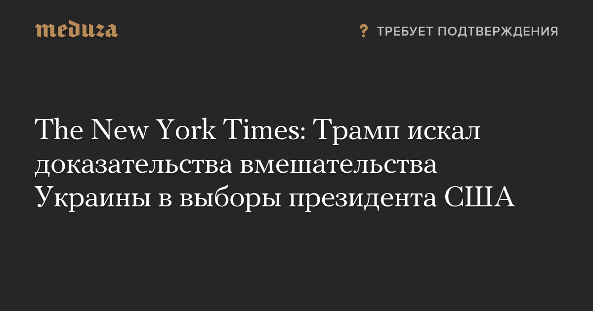 Как утверждает NYT, несмотря на выводы американских спецслужб и министерства юстиции о том, что за вмешательство в выборы президента США в 2016 году была ответственна Россия, Трамп искал доказательства того, что вмешательство было связано с Украиной и враждебными ему силами. Он же интересовался теорией заговора, согласно которой на одном из украинских серверов могли находиться пропавшие электронные письма Хиллари Клинтон, пишет газета.