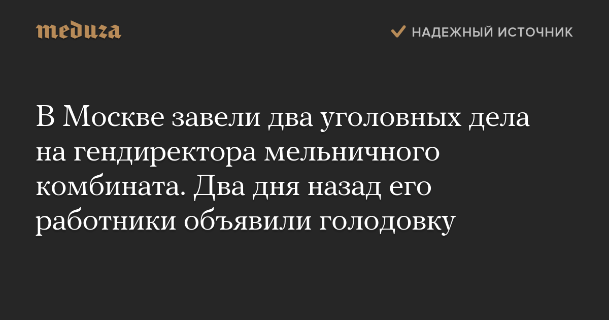 В Москве завели два уголовных дела на гендиректора мельничного комбината. Два дня назад его работники объявили голодовку