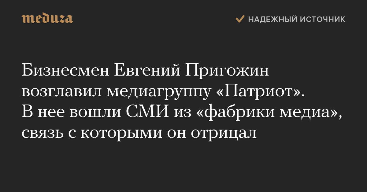 «Открытые медиа», которые первыми обратили внимание на медиахолдинг, отмечают, что связь с вошедшими в группу изданиями Пригожину приписывали давно. При этом представители бизнесмена ее отрицали.