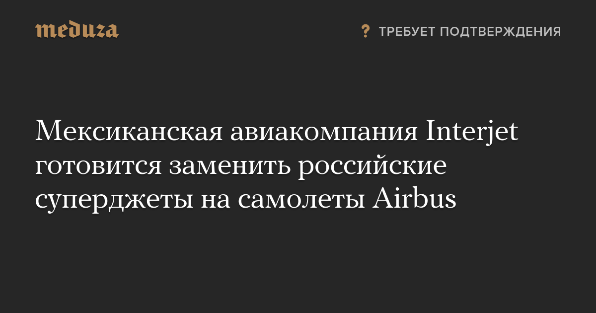 Аэробусы должны заменить в парке Interjet российские самолеты SSJ 100. По данным источников агентства, стороны близки к заключению сделки. Официально ни Airbus, ни Interjet сообщения о переговорах не комментируют.