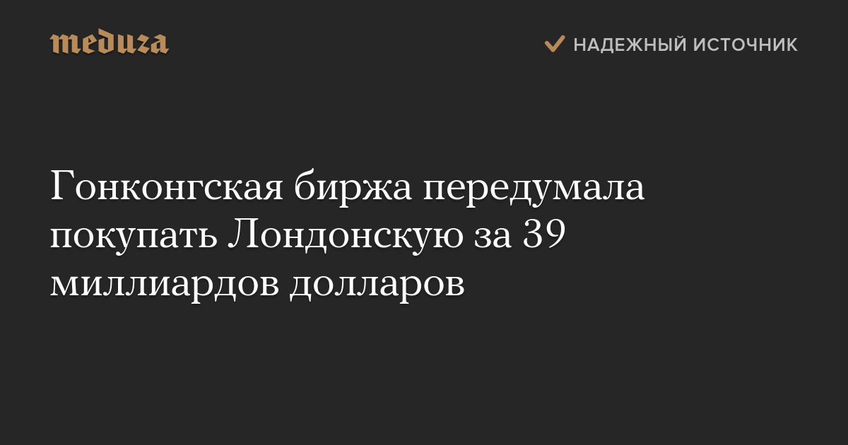 Гонконгская биржа передумала покупать Лондонскую за 39 миллиардов долларов