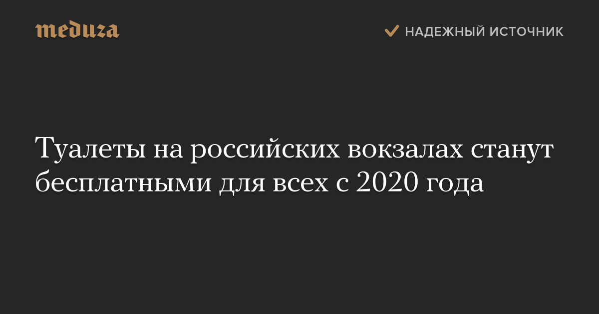 Посещение туалетов на железнодорожных вокзалах дальнего следования в крупных городах России станет бесплатным с 1 января 2020 года.
