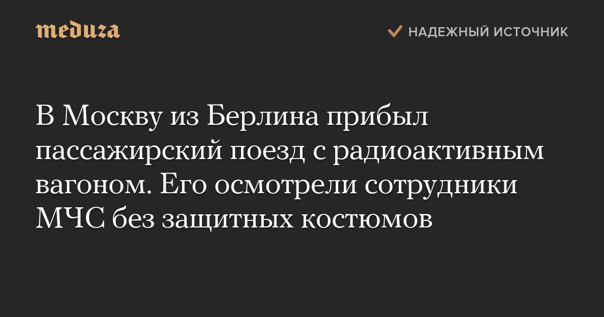 В Москву из Берлина прибыл пассажирский поезд с радиоактивным вагоном. Его осмотрели сотрудники МЧС без защитных костюмов