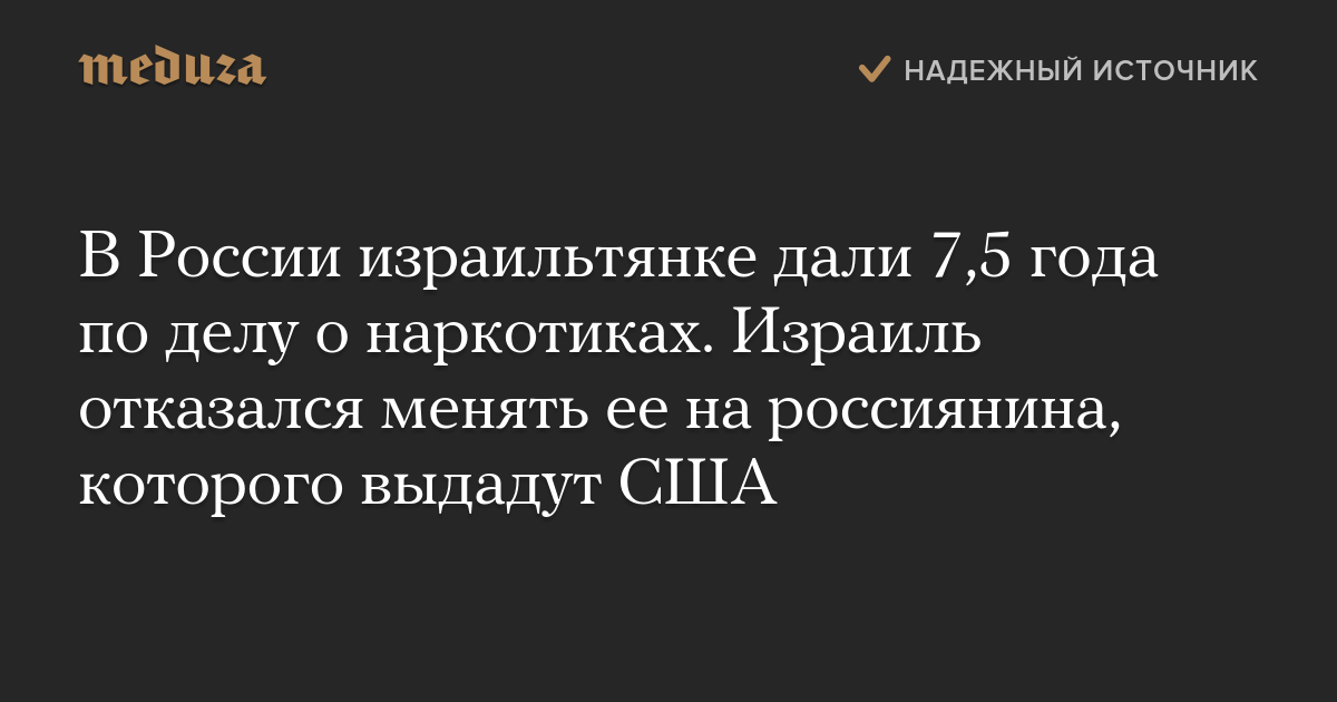 В России израильтянке дали 7,5 года по делу о наркотиках. Израиль отказался менять ее на россиянина, которого выдадут США