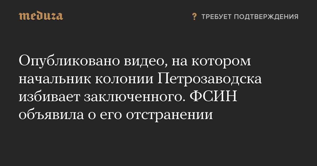 Опубликовано видео, на котором начальник колонии Петрозаводска избивает заключенного. ФСИН объявила о его отстранении