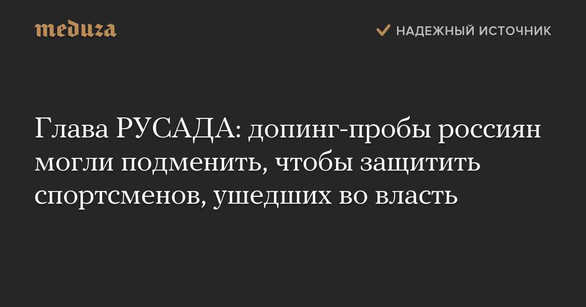 Глава РУСАДА: допинг-пробы россиян могли подменить, чтобы защитить спортсменов, ушедших во власть