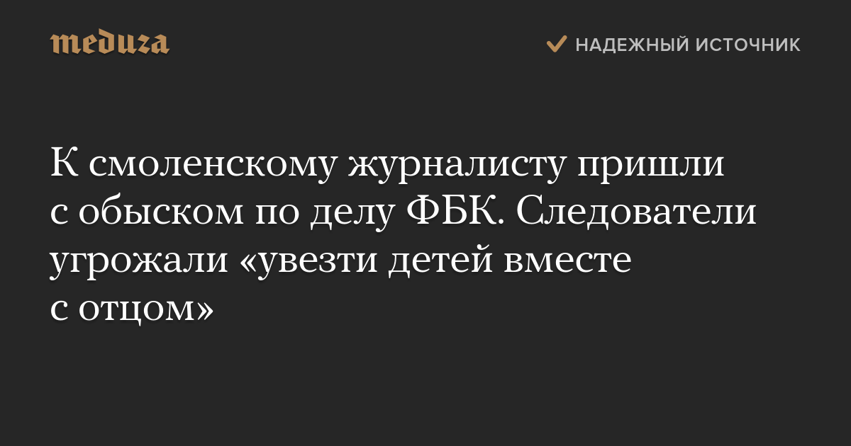 К смоленскому журналисту пришли с обыском по делу ФБК. Следователи угрожали «увезти детей вместе с отцом»