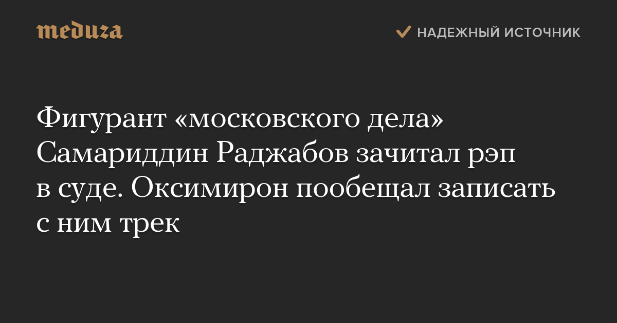 Фигурант «московского дела» Самариддин Раджабов зачитал рэп в суде. Оксимирон пообещал записать с ним трек