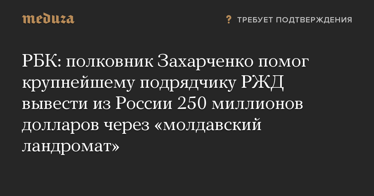 РБК: полковник Захарченко помог крупнейшему подрядчику РЖД вывести из России 250 миллионов долларов через «молдавский ландромат»