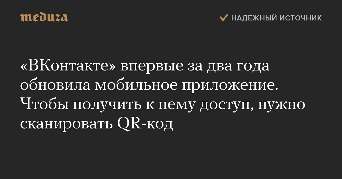 «ВКонтакте» впервые за два года обновила мобильное приложение. Чтобы получить к нему доступ, нужно сканировать QR-код