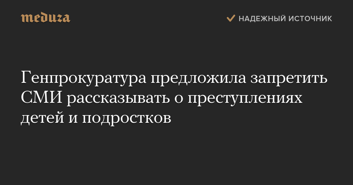 Генпрокуратура предложила запретить СМИ рассказывать о преступлениях детей и подростков