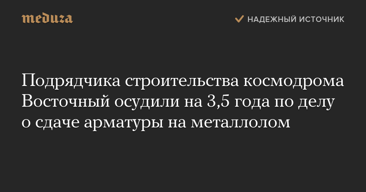Подрядчика строительства космодрома Восточный осудили на 3,5 года по делу о сдаче арматуры на металлолом