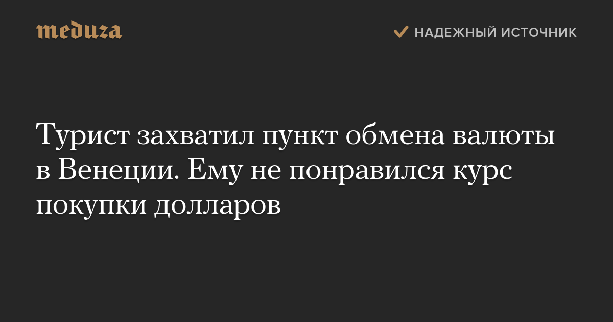 Турист из Израиля захватил пункт обмена валюты в Венеции вместе с сотрудницей. Она обменяла ему деньги не по тому курсу, который ожидал получить клиент, сообщает CNN.