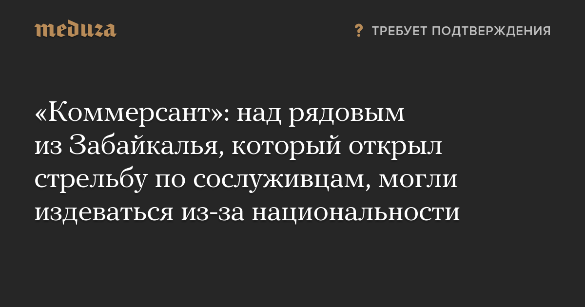 «Коммерсант»: над рядовым из Забайкалья, который открыл стрельбу по сослуживцам, могли издеваться из-за национальности