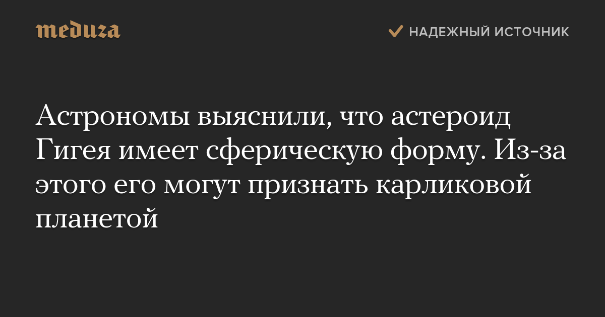 Астрономы выяснили, что астероид Гигея имеет сферическую форму. Из-за этого его могут признать карликовой планетой
