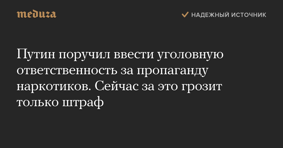 Путин поручил ввести уголовную ответственность за пропаганду наркотиков. Сейчас за это грозит только штраф