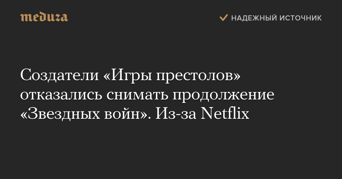 Создатели «Игры престолов» отказались снимать продолжение «Звездных войн». Из-за Netflix