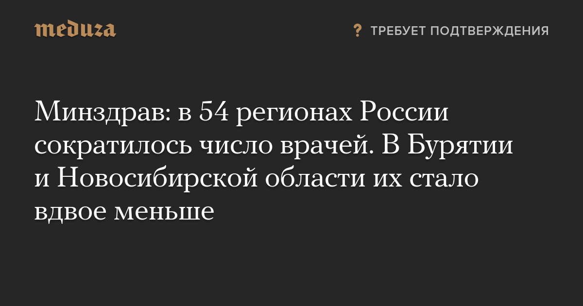 Минздрав: в 54 регионах России сократилось число врачей. В Бурятии и Новосибирской области их стало вдвое меньше