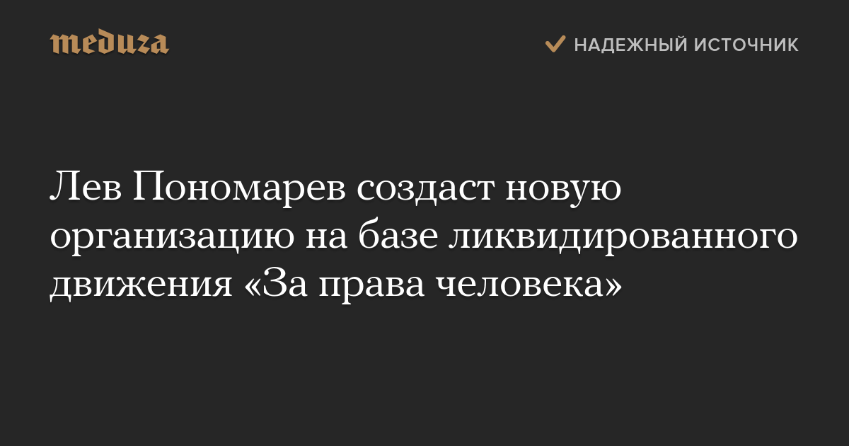 На базе ликвидированного Верховным судом движения «За права человека» будет создана новая организация. Об этом на сайте движения объявил его лидер Лев Пономарев.