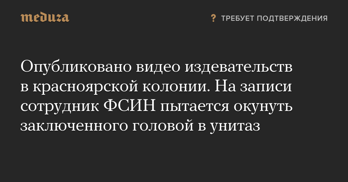 Издание NGS24.RU опубликовало видеозапись, снятую в исправительной колонии № 17 в Красноярске. На записи человек в форме ФСИН пытается окунуть заключенного головой в унитаз после отказа убирать территорию.