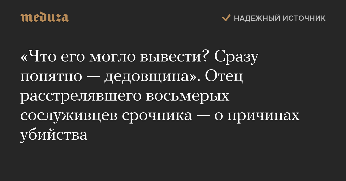 «Что его могло вывести? Сразу понятно — дедовщина». Отец расстрелявшего восьмерых сослуживцев срочника — о причинах убийства